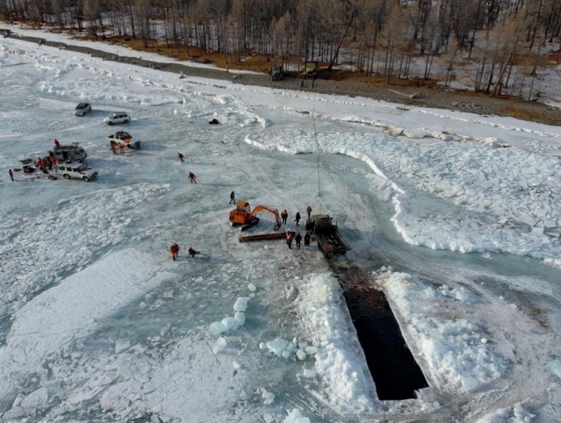 Тус автомашин нь 23 метрийн гүнд живсэн байсан бөгөөд 10м урттай, 3.5м өргөнтэйгээр мөс гудамлаж, эргээс 90 метрийн зайнаас татан гаргасан байна.